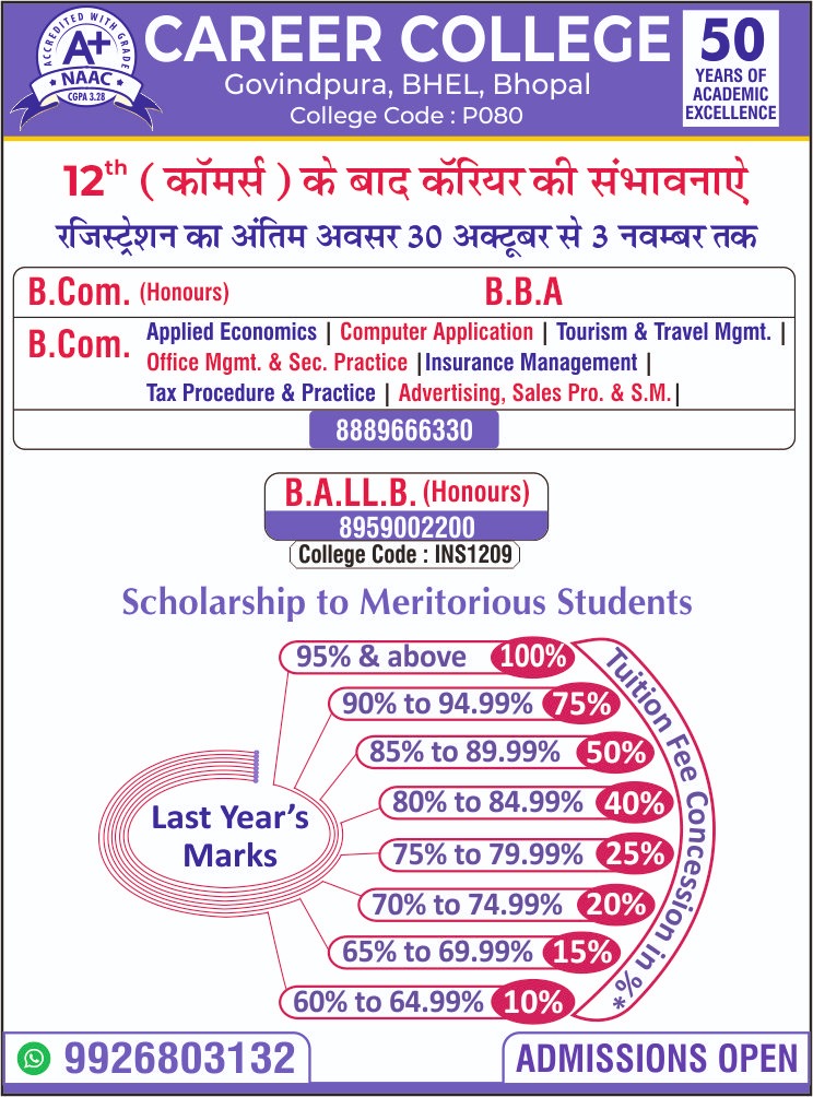 BCom (Honours) BBA BCom (App. Eco./ Comp. App./ Tour & Travel/ Office Mgmt./ Insurance/ Tax/ Advertising) BALLB (Honours)