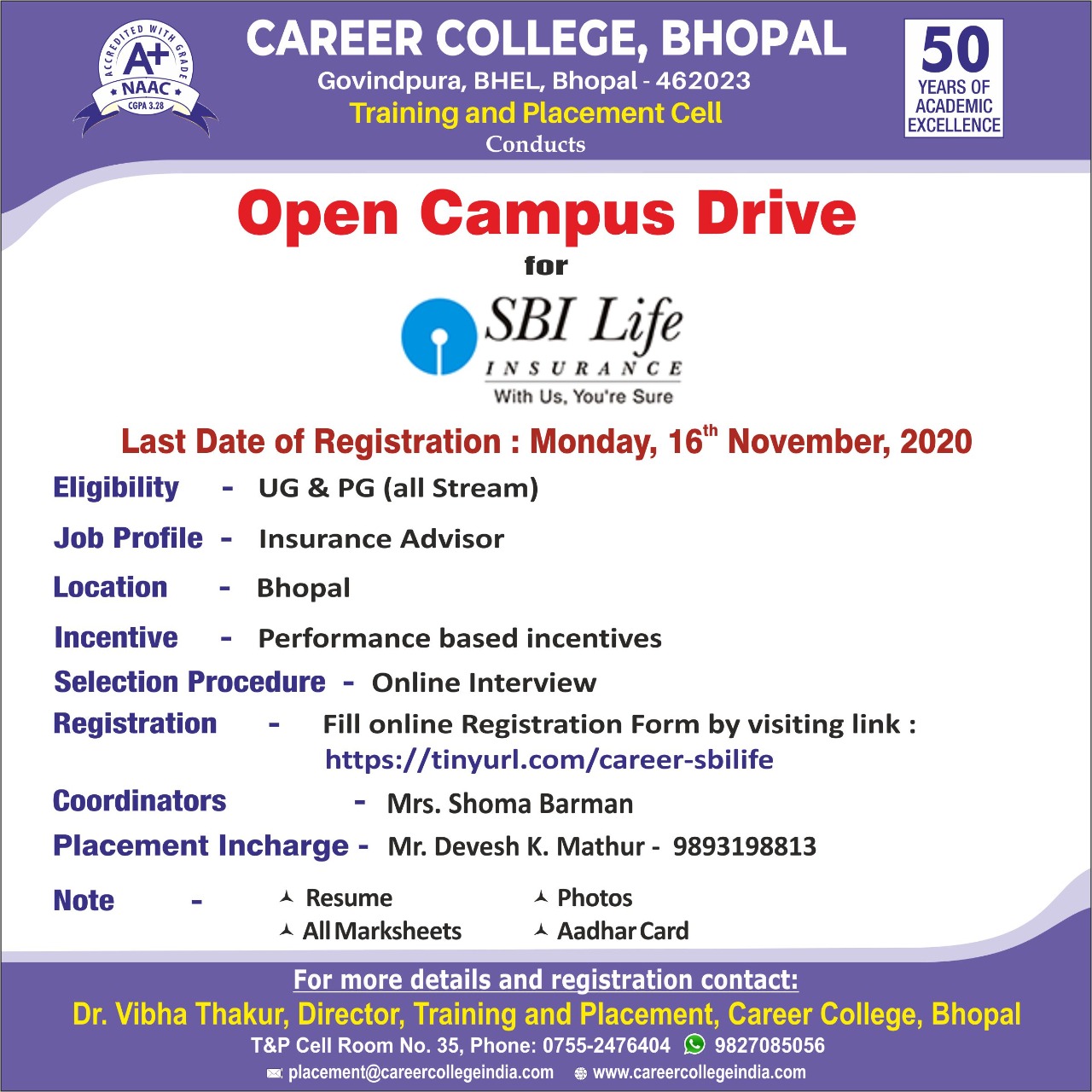 Last date for registration is 16th November, 2020.Registration link: https://tinyurl.com/career-sbilife