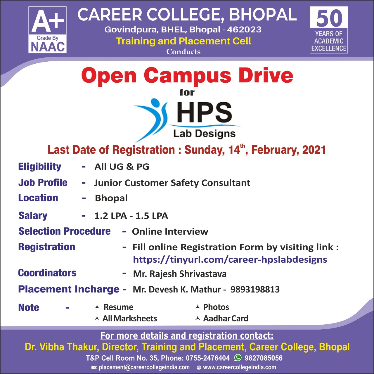 *Last date for registration is 14th February, 2021*. Registration links:*HPS Lab Designs* - https://tinyurl.com/career-hpslabdesigns